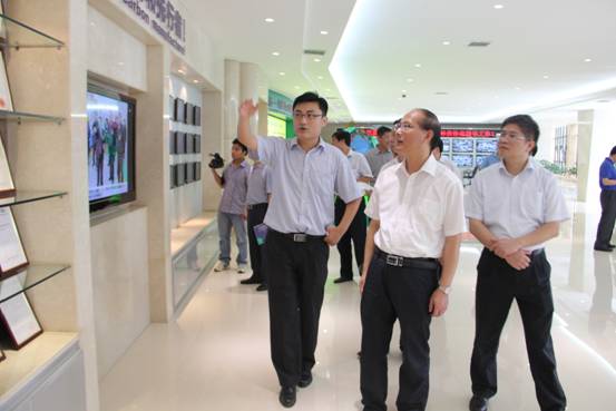 圖1. 吳主任(居中)在查看格林美信息監(jiān)控中心