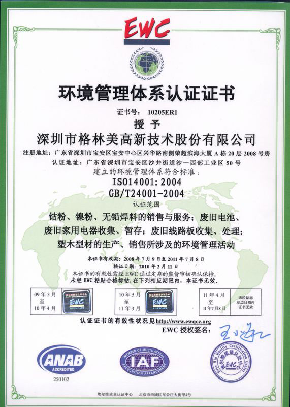 武漢格林美新材料有限公司(工廠)